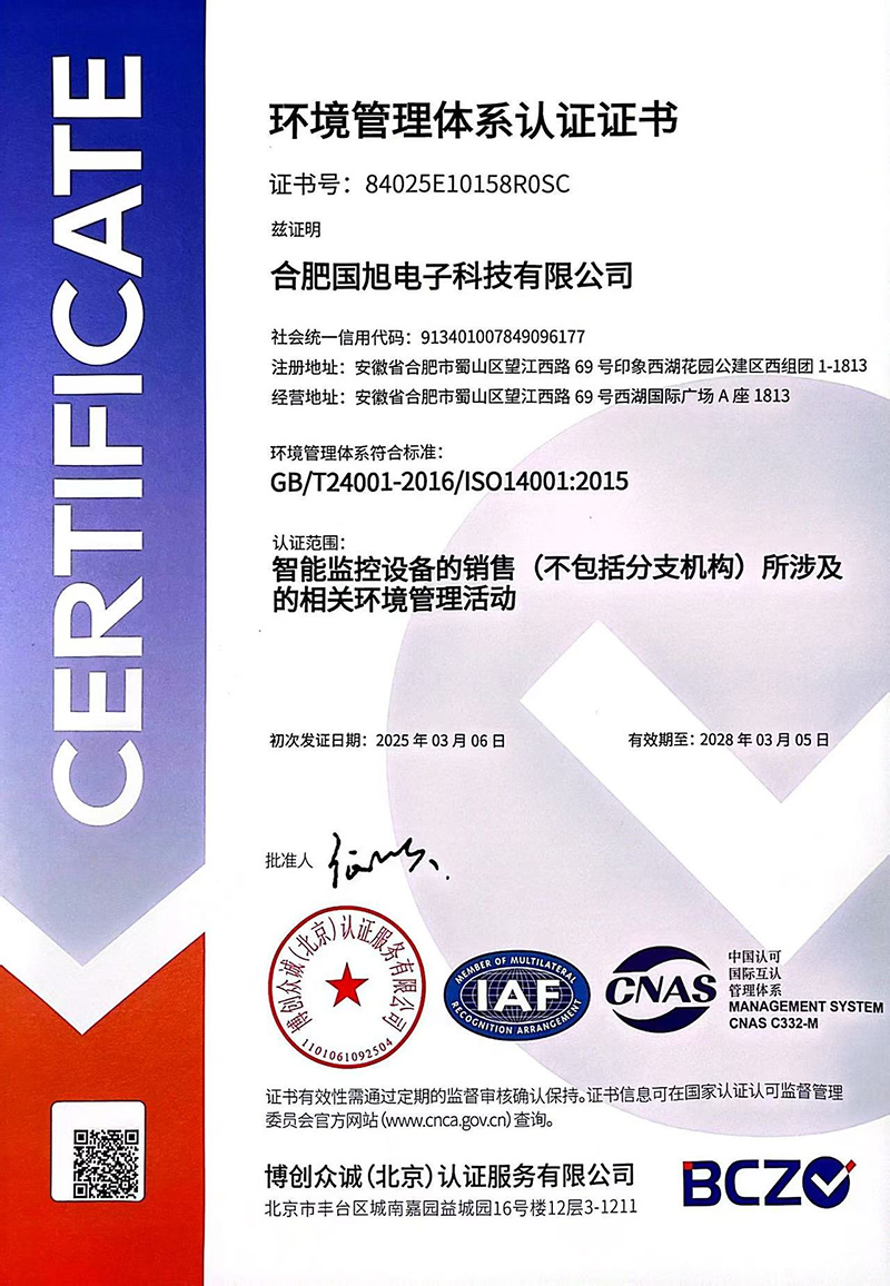 合肥國旭電子科技有限公司創立于2006年,總注冊資本2008萬。公司總部地址位于安徽IT主流商圈核心,合肥市蜀山區望江西路與肥西路交口西湖國際廣場。 公司是專業從事智能防雷檢測系統、智能化工程設計與施工工程、防雷設計施工工程、數據中心機房、消防工程、網絡監控安全技術防范工程、及智能變電站安全預警系統。